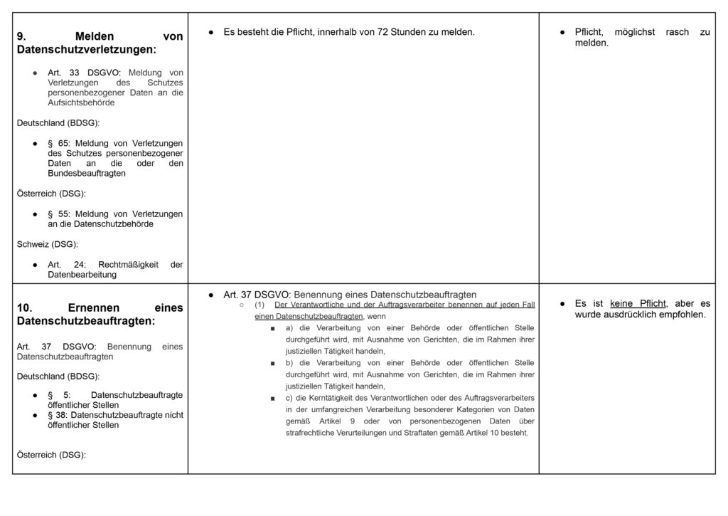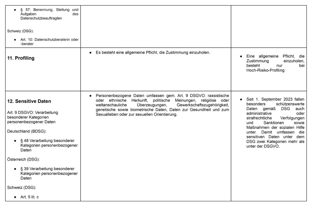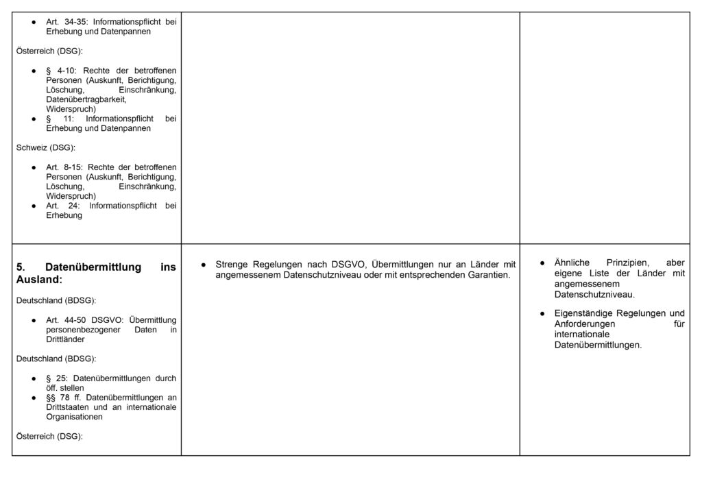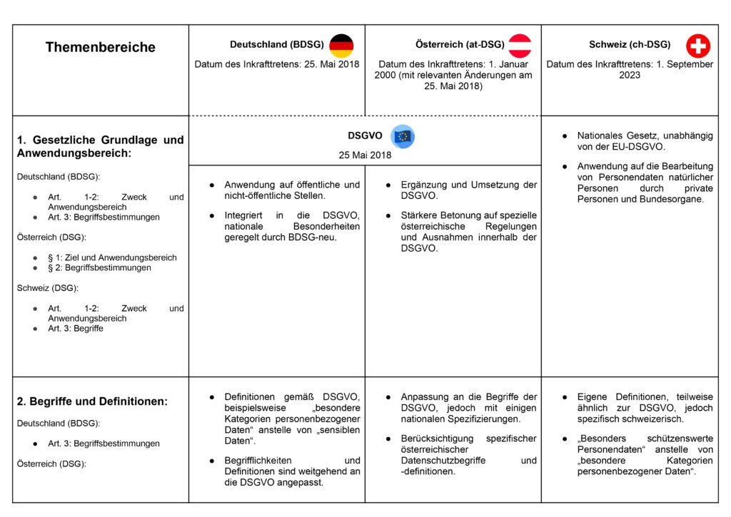 Vergleich Datenschutzgesetze: Österreich, Deutschland, Schweiz